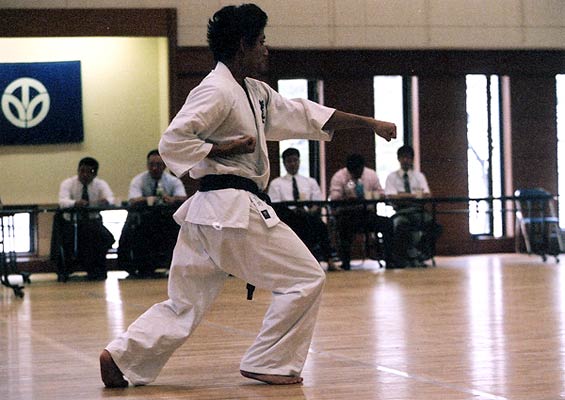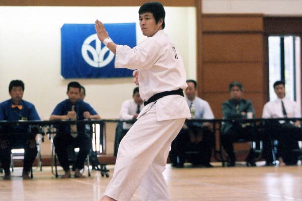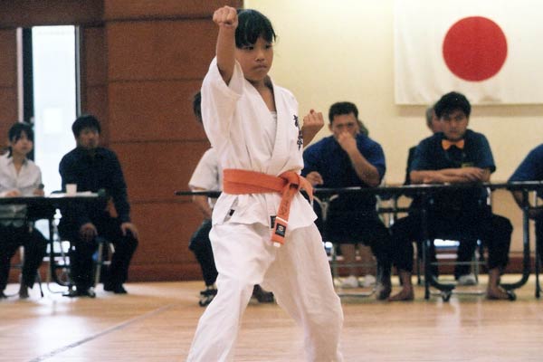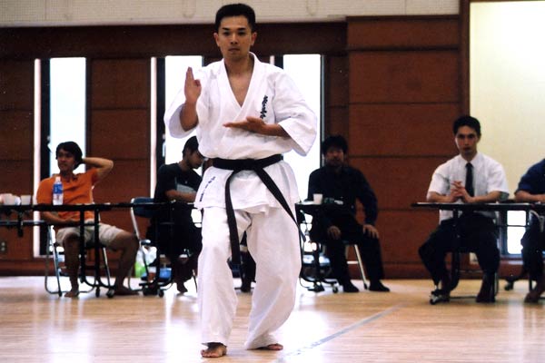 決勝での演武においては各選手が自分の持ち味を存分に発揮しそれぞれが素晴らしい出来栄えだった。1・2年の部では土岡が特に良く、2位以下に大きく点差をつけての優勝となった。敗れた選手もレベルが低いわけではなく最年少で白帯の池村も大健闘し予選では他の選手とほとんど差がなかった。3・4年の部は激戦となった。予選は松田がトップに立ったが決勝では渡邊と玉川が見事な型を演じ逆転。優勝と準優勝の座を勝ち取った。5・6年の部は更に激戦。予選では村松が0.5差のトップで他3人は同点。決勝も僅差となったが茶帯で六年生の2人が経験の差で上位に。五年生の2人は少しの差で3、4位に甘んじた。一般部では昨年優勝の伊香に注目が集まった。期待通り予選から2位に3.5点差をつけての決勝進出。今回伊香が決勝で演じた型は観空。挙動数が多いため集中力が必要となる。前半ややバランスがくずれ、後半のえの字立ちから騎馬立ちの連携にあまい部分が見うけられたが、スピードや緩急の面で加点となり予想以上に点が伸びた。他の選手は2名が征遠戦で1名が同じく観空で勝負したが伊香を超える点には届かなかった。結果伊香が堂々二連覇を達成した。