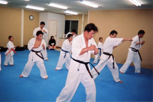 追加で座高突きと座高蹴りを30本ずつ行ったあと正拳突きと前蹴り回し蹴りで締め、この日の稽古を全て終了した。