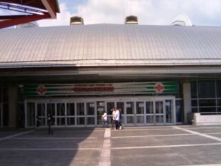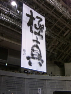 先に型試合があり、アジア、ヨーロッパ、ロシア、中東などからの参加者も多く、実に国際色豊かだった。型の試合は静かな会場の中に選手の呼吸と動作による道着の音だけが響き、張り詰めたような緊張感がある。見事な演武をした選手には、自然と会場全体から惜しみない拍手と歓声が起こる。各国の特徴が良く表れた演武となり素晴らしかった。