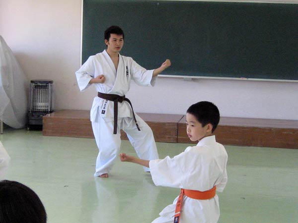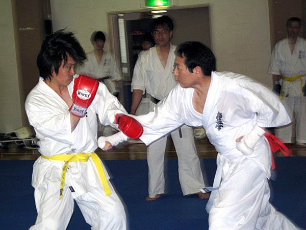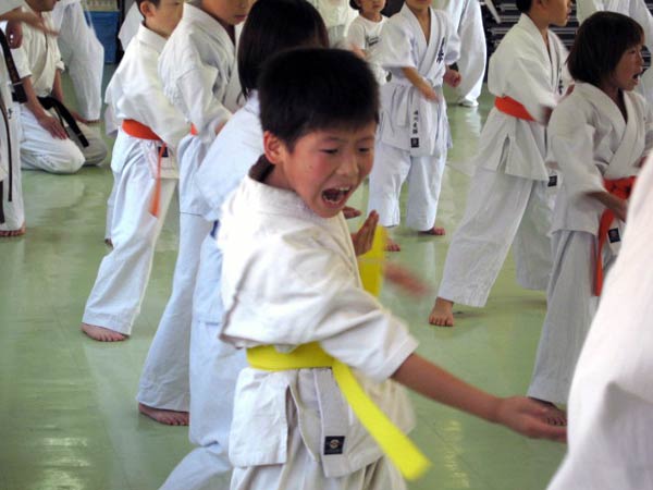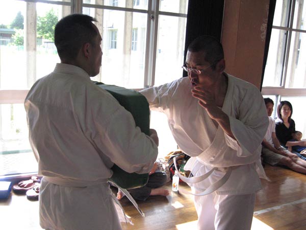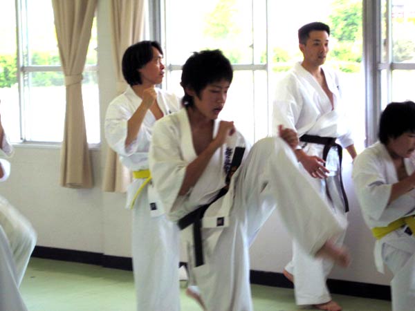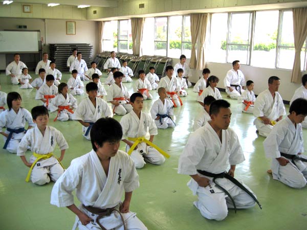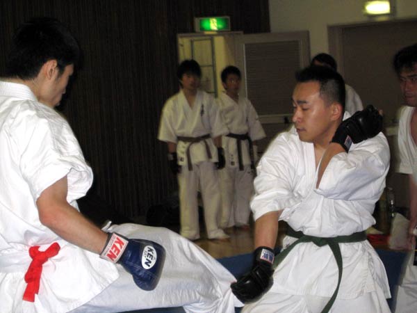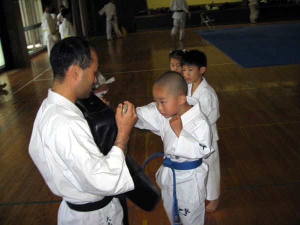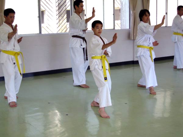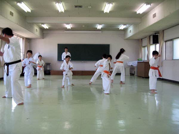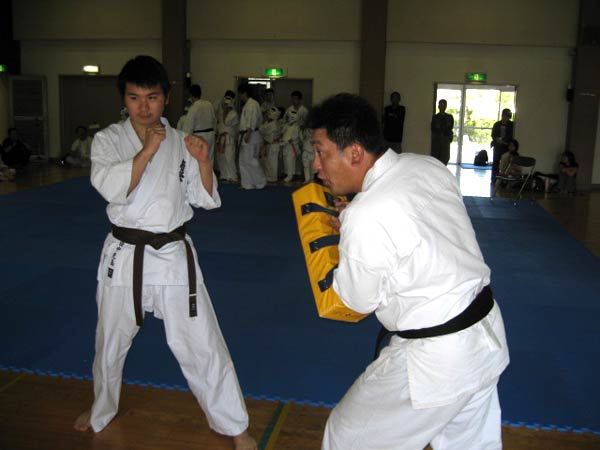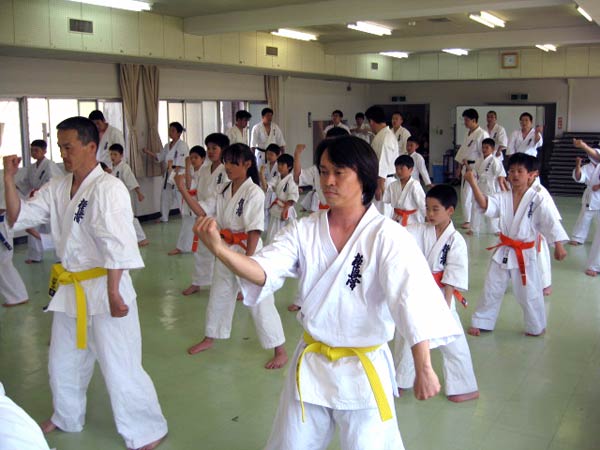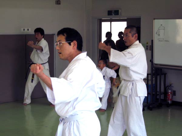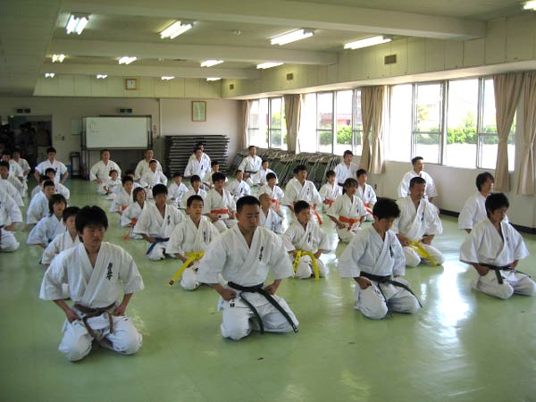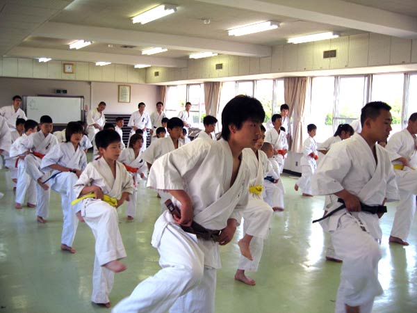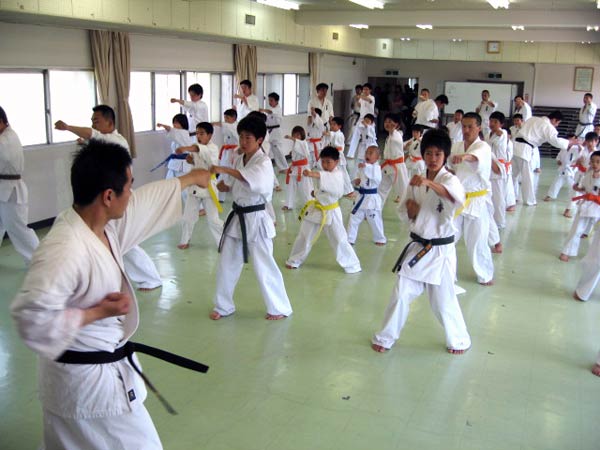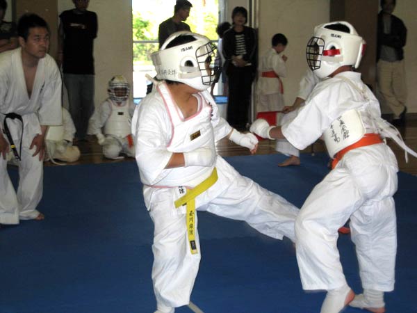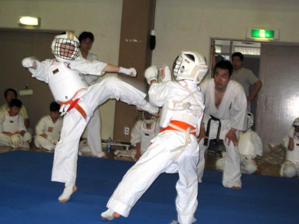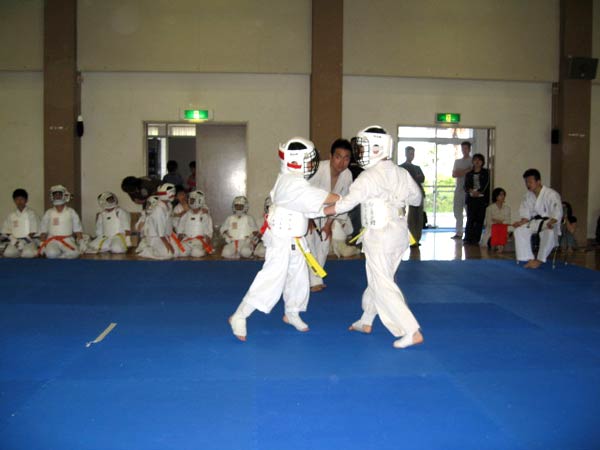 練成大会は今回で4回目になります。元々、この大会は試合経験が少ない道場生に経験を積んでもらうことを目的につくられたもので、トーナメントを廃して一人が何試合かを必ず行えるようにするというものでした。しかし、そのために選手の試合の待ち時間が長くなり間延びするという意見が過去の大会の反省として出ました。そこで今回は新しい試みとして、試合の待ち時間に型と組手の稽古を組入れることにしました。体格や年齢などによりグループをつくり、あるグループが試合をしている間に他のグループが型や組手の稽古を行うというものです。また、今回から一般部の参加も受け入れ、様々な年齢層の人が試合に稽古に汗を流しました。