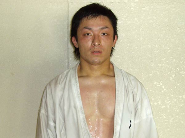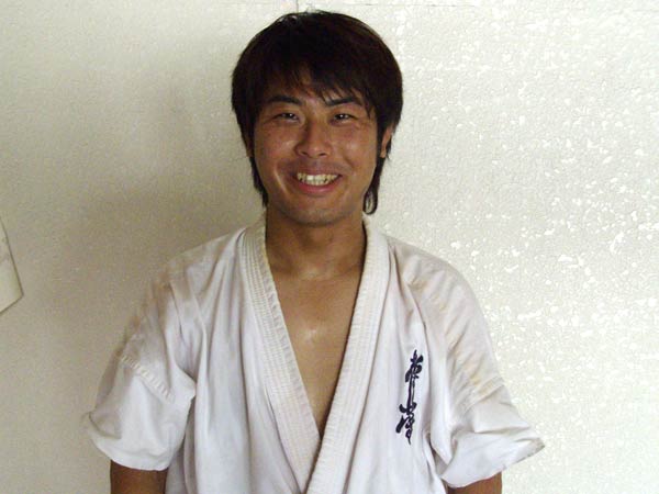 | なんつーか、ただただ情けないと言うか。いやー全く身体がついていかなかったんで。(そんなことないですよ。)いや、ほんとにほんとに。(え、いつですか。)いや、今日。いやみんなで組手するまでにすでに体力使い切っていたかも。(何で使ったんですか。来るまでに使ったんですか。)えーいやそうじゃなくて、最初の基本と方で、全て使い切ったようなちょっと。え、これですか?(傷跡)これは前にバイクでこけて…。えー。えーまあとにかくもっと…出直してきます。押忍。(夏はエンジョイしてますか。)いやーこれといってしてない。してるとは言えないですけどええ。(空手ばっかですか。)いやそういうわけではない。まあ、とにかく・・・一日一日大事にしていきたいなと。押忍。 |