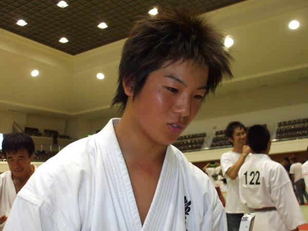 決勝戦です。(同じ武生道場の杉田選手とでしたね。一番辛かった?)そうです。(相手の組手を)知ってるんで。(やりにくかった?)て言うか強かったです。 |