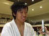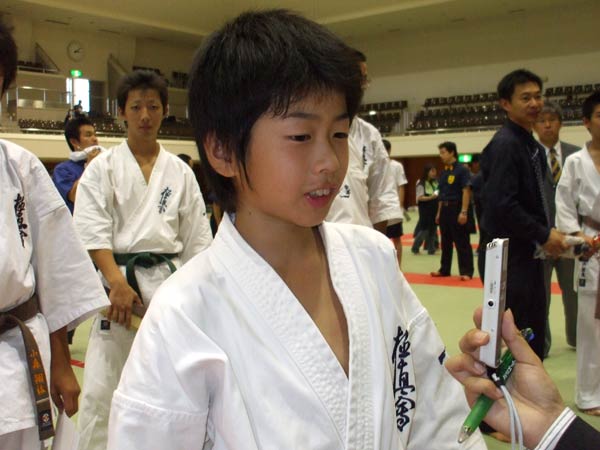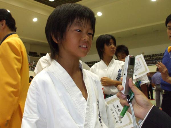 疲れました。ははは。初めてやったもんですから。ええ(決勝戦結構大きい人でしたが。)でも緊張がとけたもんですから、ええ、なんかリラックスして決勝戦ができました。 |