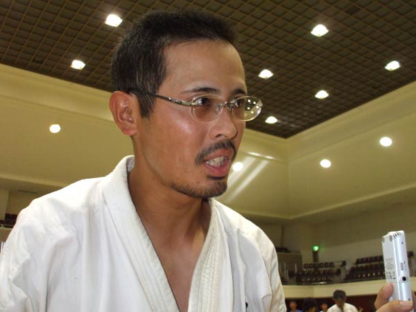 ここ1年くらい出ると負けだったんでね、ちょっと今日は組手のスタイルを変えてみたんです。組手のスタイルを元に戻したら、自分のスタイルが貫けて思うような結果が出たのが良かったです。歳が歳なんでね、ガチンコでやっちゃうとどうしてもスタミナが負けちゃうんで今日はちょっとテクニックで、はい。 |