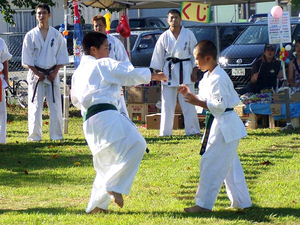 次に少年部による型、撃砕小を玉川、宮川の両名が行った。二人とも支部の大会では上位の実力があるのでメリハリのある型に観客は感心していた。
