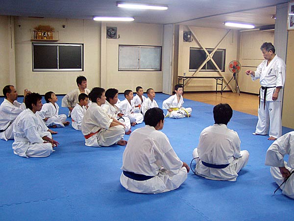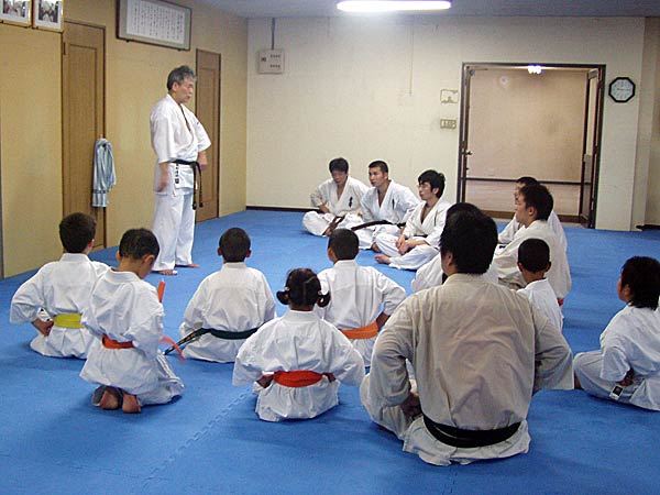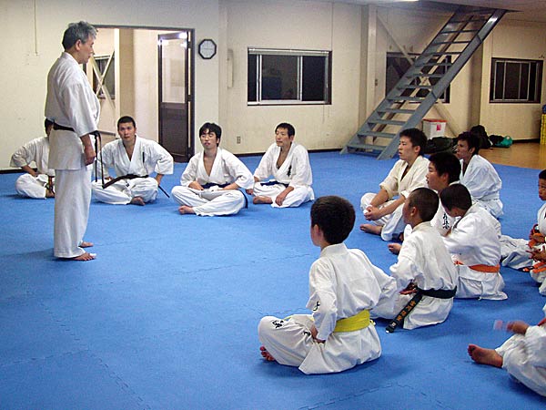 突き蹴りで締めた後は磯部師範より講話をしていただいた。師範の福井に対する思い、そこで稽古しているみんなに対する思い、強くなる為の心構えなど、みんなからの質問を交え約1時間熱く語ってくださった。