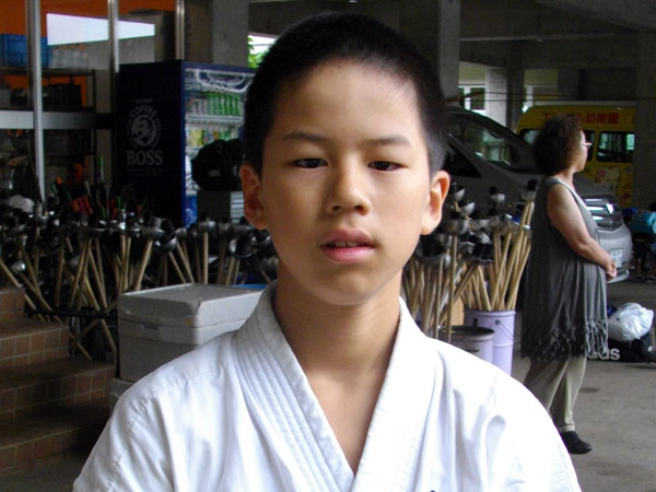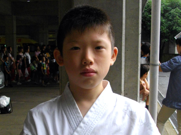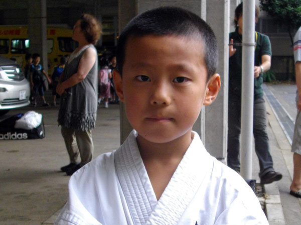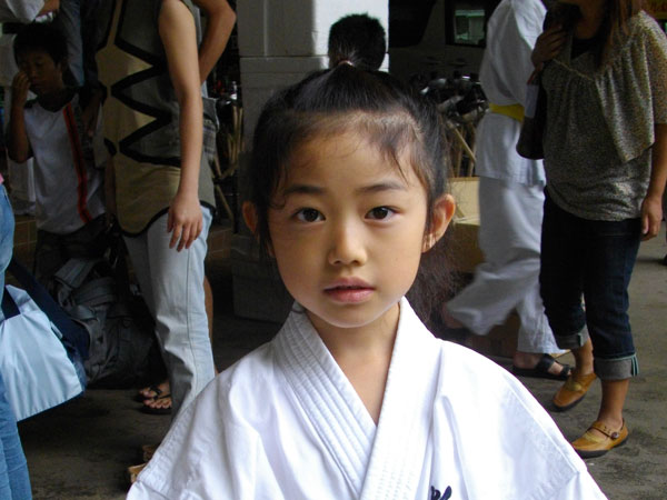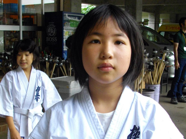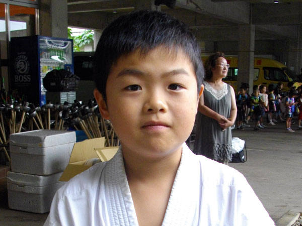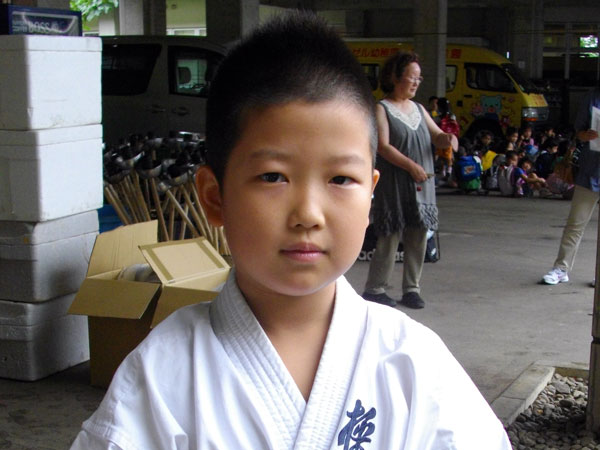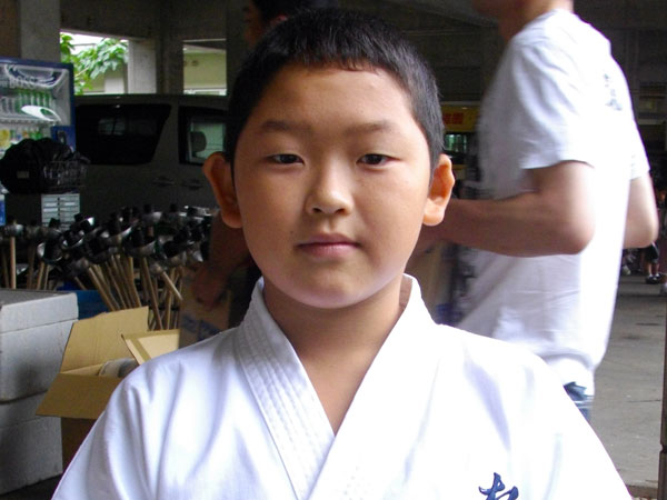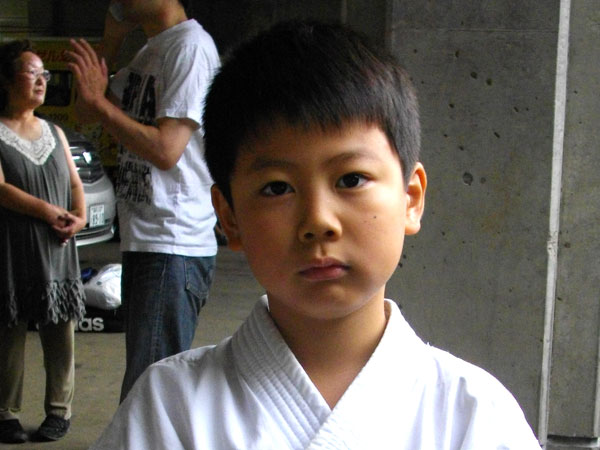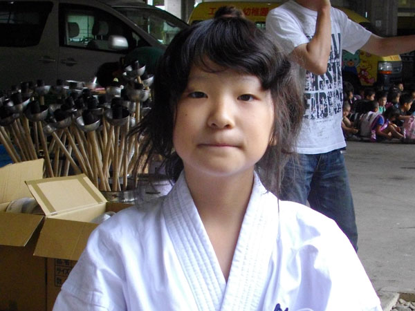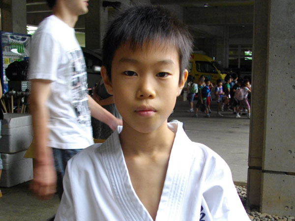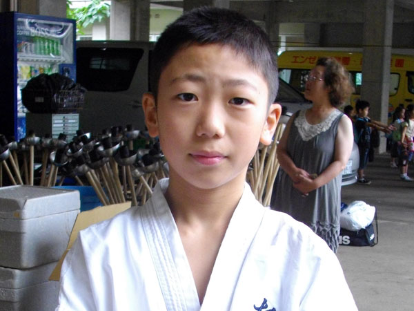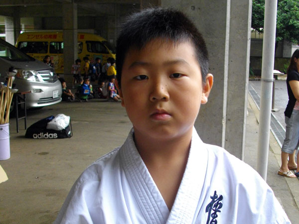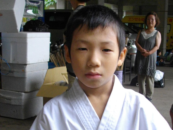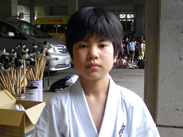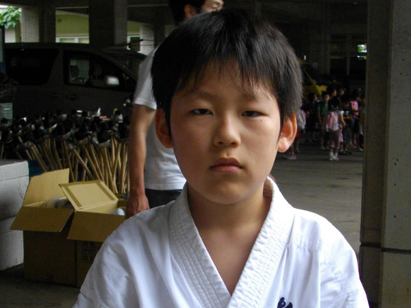 3時15分からは午後の稽古。田中支部長の指導で準備運動と基本を行なったあと、帯別に分かれて型の稽古に移った。白帯は太極、橙帯は平安、といった感じでそれぞれが修得すべき型を中心に稽古を進めた。9月の型試合を目指している子が多いのか、結構みんな動作がしっかりと出来ていた。稽古時間残り40分くらいとなってからは、ドッジボール大会午後の部に。みんな待ってましたとばかりに元気が良くなり、午前中以上に連係プレーが冴えわたっていた。決勝は同点で延長3分間を行い、2班が栄冠を勝ち取った。