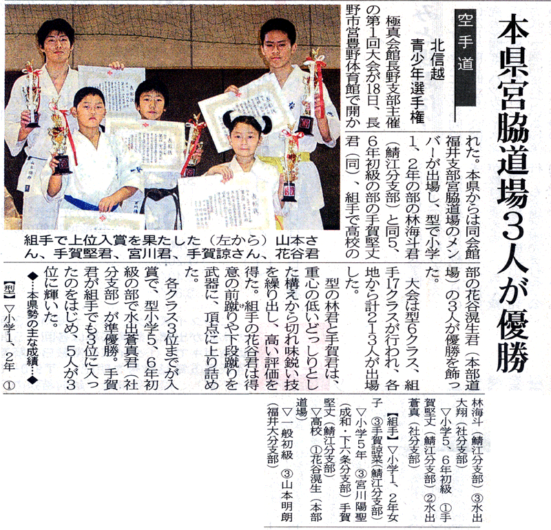 北信越青少年空手道選手権大会 新聞掲載記事