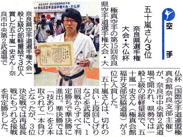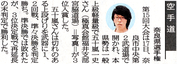 第15回奈良県空手道選手権大会・大仏杯 新聞記事