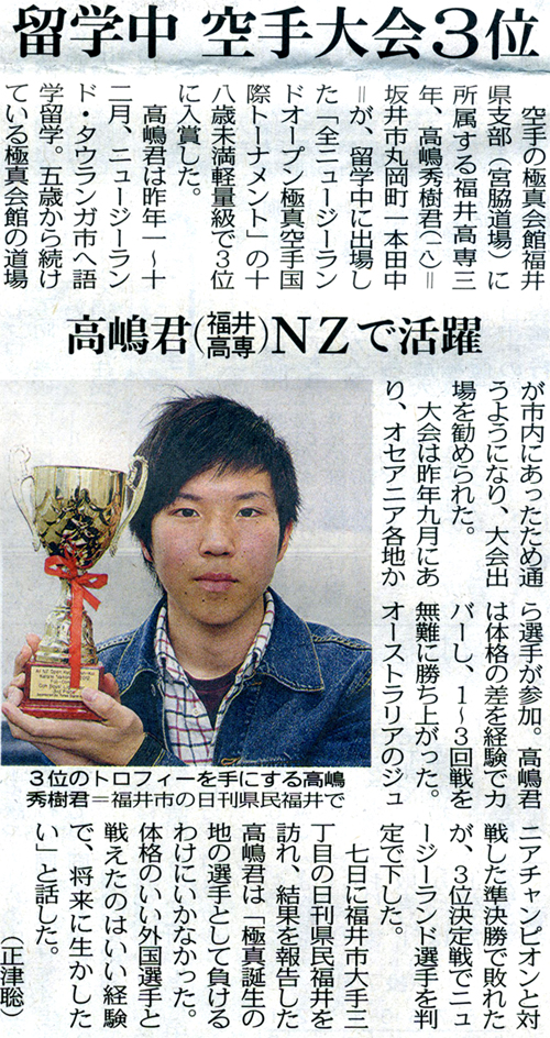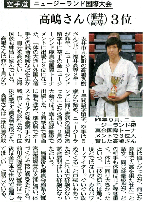 全ニュージーランドオープン極真会国際トーナメント 新聞記事