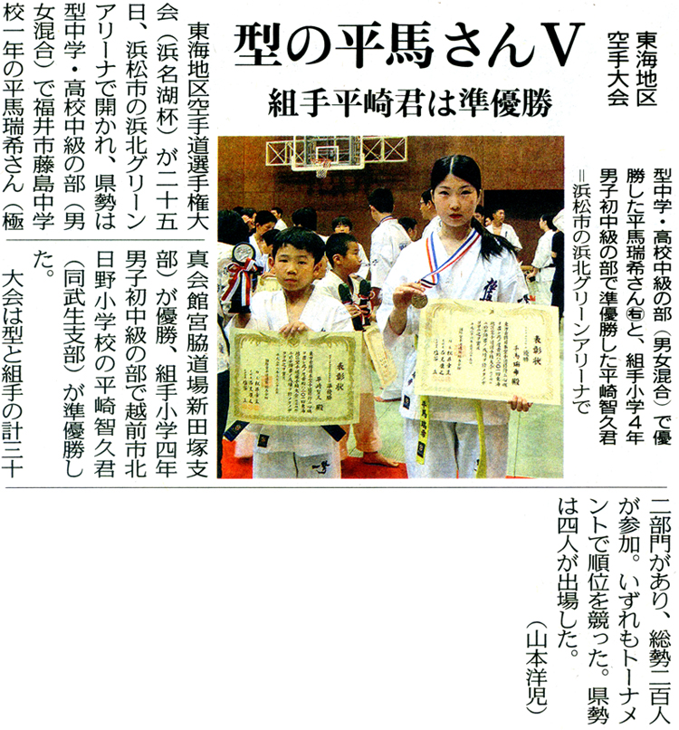 東海地区空手道選手権大会に以下の選手が入賞しました。