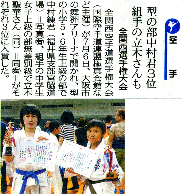 第27回全関西空手道選手権大会に以下の選手が入賞しました。