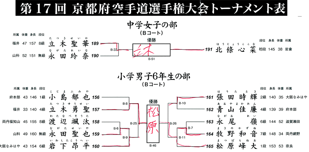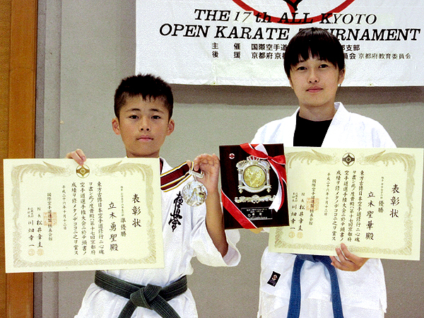 第17回京都府空手道選手権大会に以下の選手が入賞しました。